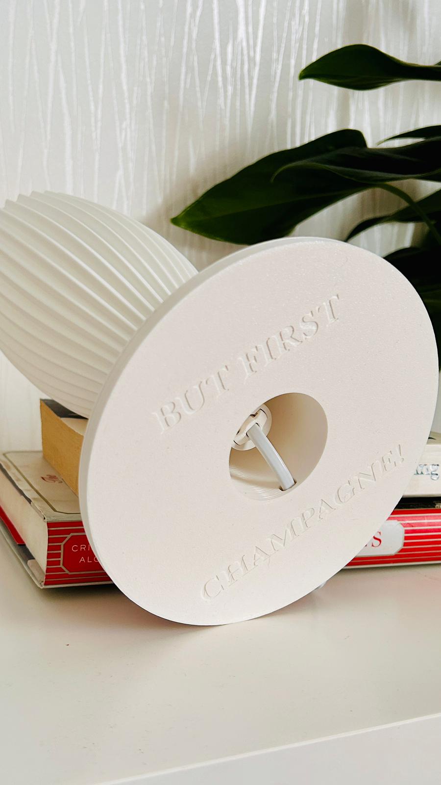 Bring a touch of elegance to your bedroom or living space with the Champagne Glass Lamp “TAURE”. Inspired by the refined curves of a champagne flute, this lamp combines sculptural beauty with soft, ambient light — the perfect balance of design and function.